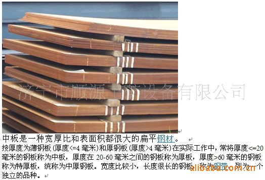中板是一种宽厚比和表面积都很大的扁平钢材。
