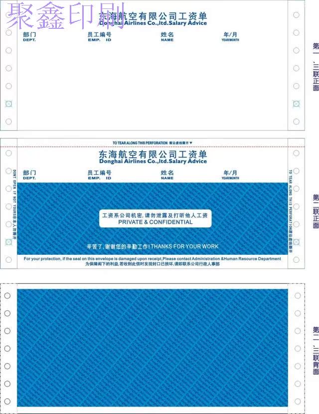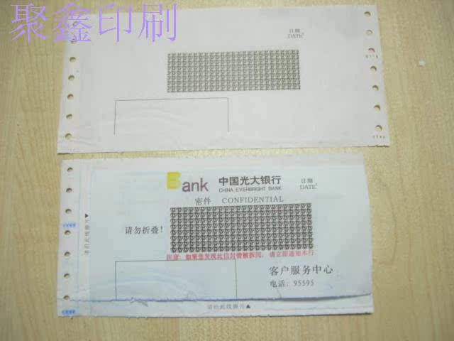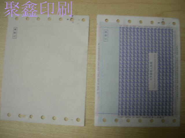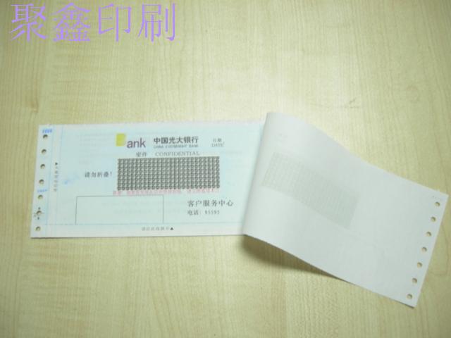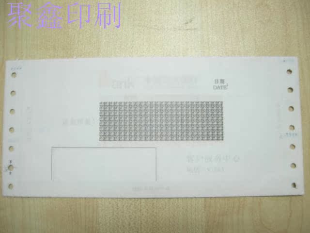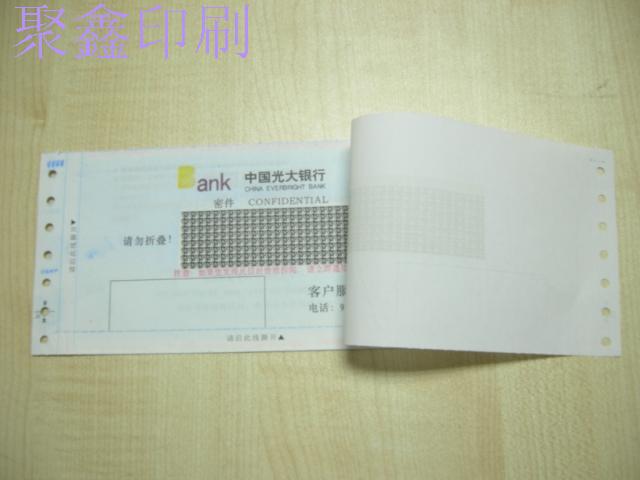 1、商用票据凭证类:带孔电脑打印票据、电脑连续打印无碳联单、带孔连续电脑打印多联无碳表格单据印刷。 2、政府部门:政府部门带孔电脑打印水、电、煤气收费单、医疗收据、门诊收费收据、医药结算清单、石油石化系统电脑票据、珠宝质保凭证等企事业单位表格票据带孔电脑打印票据印刷。 3、外资企业:日企韩企保证书控、保密薪资单、保修单、工厂送货单、收货及检验报告单、收款凭据、酒店结算单据、住宿单、专卖店结算清单、制衣厂菲仔纸、裁床单等带孔电脑打印票据印刷。 4、金融保险电信业:银行ATM凭条纸、银联POS机纸、银行保密函、保险业的保险单、电信密码充值卷及各类卷纸、商场连锁电脑小票、收银纸等印刷。 5、物流行业:物流条形码快递单、提货单、海运提单、地磅单、汽车4S店维修单等带孔电脑打印联单印刷。 6、门票 电影票 入场券 展览会 演唱会 旅游景区等门票印刷, 7、不干胶标签:电脑打印条码卷式(叠式)连续电标签、散(平)张标签带孔电脑打印不干胶标签印刷。 电脑纸表格票据、单据尺寸丰富,高度(英寸):7″、8″、8.5″、9″、10″、10.5″、11″、11.667″(A4)、12″、12.5″、13″、14″、15″、16″、17″、18″、22″的电脑纸单据均可生产, 电脑纸表格单据,票据印刷宽度(英寸):3″—15″均可生产印刷, 电脑纸表格票据单层纸张厚度为60g、70g、80g、100g、120g 特殊规格电脑表格纸单据可根据客户要求订作。