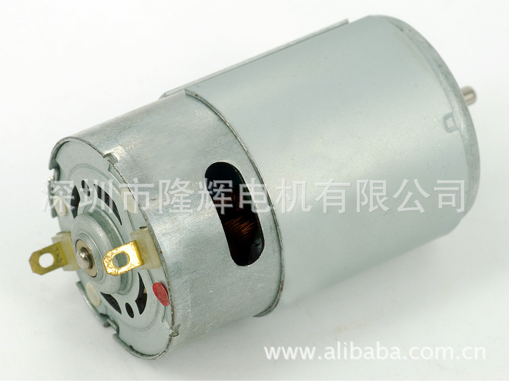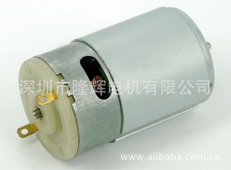 LR555型直流电机,圆形,直径35.8mm,机身长度57mm,输出轴直径3.17mm,工作电压范围:DC1.5-30V,(电机的转速、电流、力距等特性参数可按客户要求生产),其典型用途:电动工具、遥控玩具、修剪机
