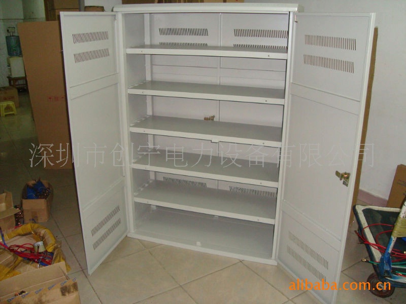 电池柜采用金属组件、机械性能好,承载能力大,结构紧凑合理,互换性能,整柜静电喷塑、柔光、耐磨、防腐蚀、防火性能好、绝缘、经久耐用。设计可放置多只大容量或少容量电池。方便运输、安装。