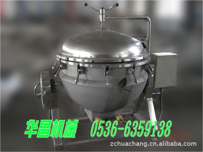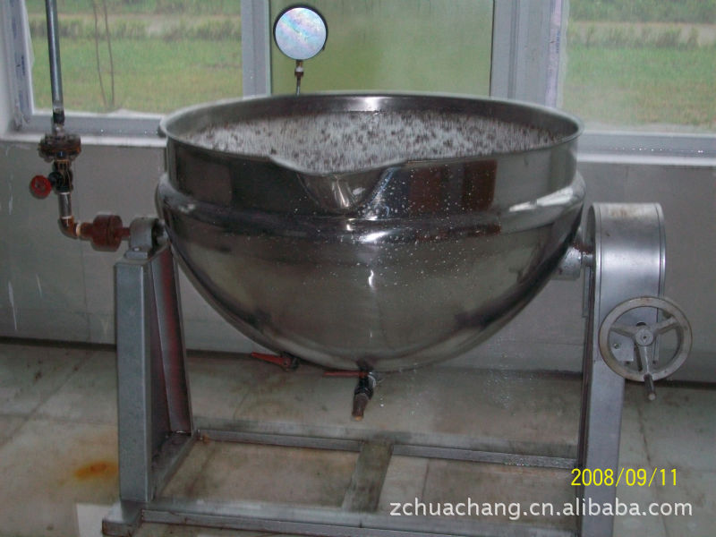 本锅采用冷冲压球形封头,能够承受0.4Mpa以上蒸汽压力。传热均匀,效率高,避免了物料糊状易烧焦的普遍现象,特别适合于调味品和酱料的蒸煮、调配以及混合,热敏性物料尤宜。所有和物料接触的部分均采用316L高级不锈钢制造,并经过严格抛光。设有高低速双搅拌和分流挡板,以及铁弗龙贴壁刮板。容器均可拆卸,完全符合食品卫生清洗要求,是高品质调味品或饮料的理想装备。