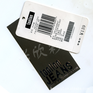 我司可按客户的要求,生产设计各种规格的纸质吊牌,可进行UV印刷、凹凸、过光油、烫金烫银、覆膜、模切、打孔、打鸡眼、穿绳等后续加工,另外也可印刷PVC等塑料吊牌。
