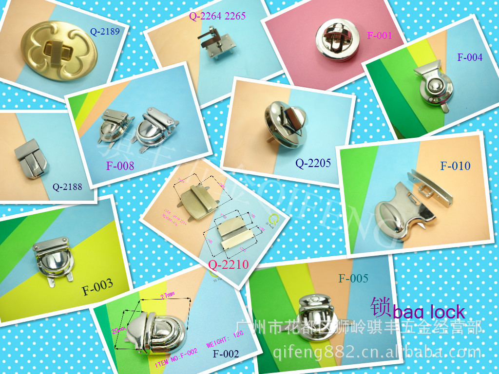 我司是专业生产各种箱包五金配件,产品品质优良,种类齐全,有各式各样的箱包锁、密码锁、及其它箱包五金配件,同时也生产多种款式新颖的扣类。