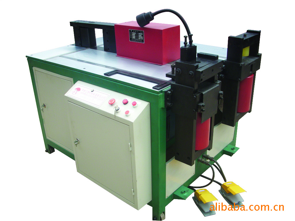 机器上装有冲、剪、折三个加工单元,通过脚踏开关或手动开关。可分别进行母线的冲、剪、折加工,是高低压电气行业理想的生产设备。