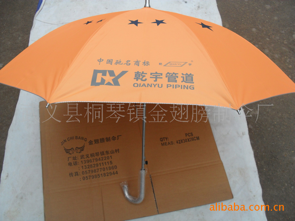 购买须知:本厂专业生产雨伞,为广大客户提供现货及定制雨伞和广告礼品伞,现在阿里巴巴上推出我厂组合产品本厂结合多年销售及生产经验形成了雨伞一条龙生产线自主设计款式多样质量得到保障价格有竞争力。本厂对售出的产品有1年质量保证(礼品广告伞,处理伞除外),对没使用提供过的提供免费对换对使用过程中出现的质量问题我厂可以提供免费维修。