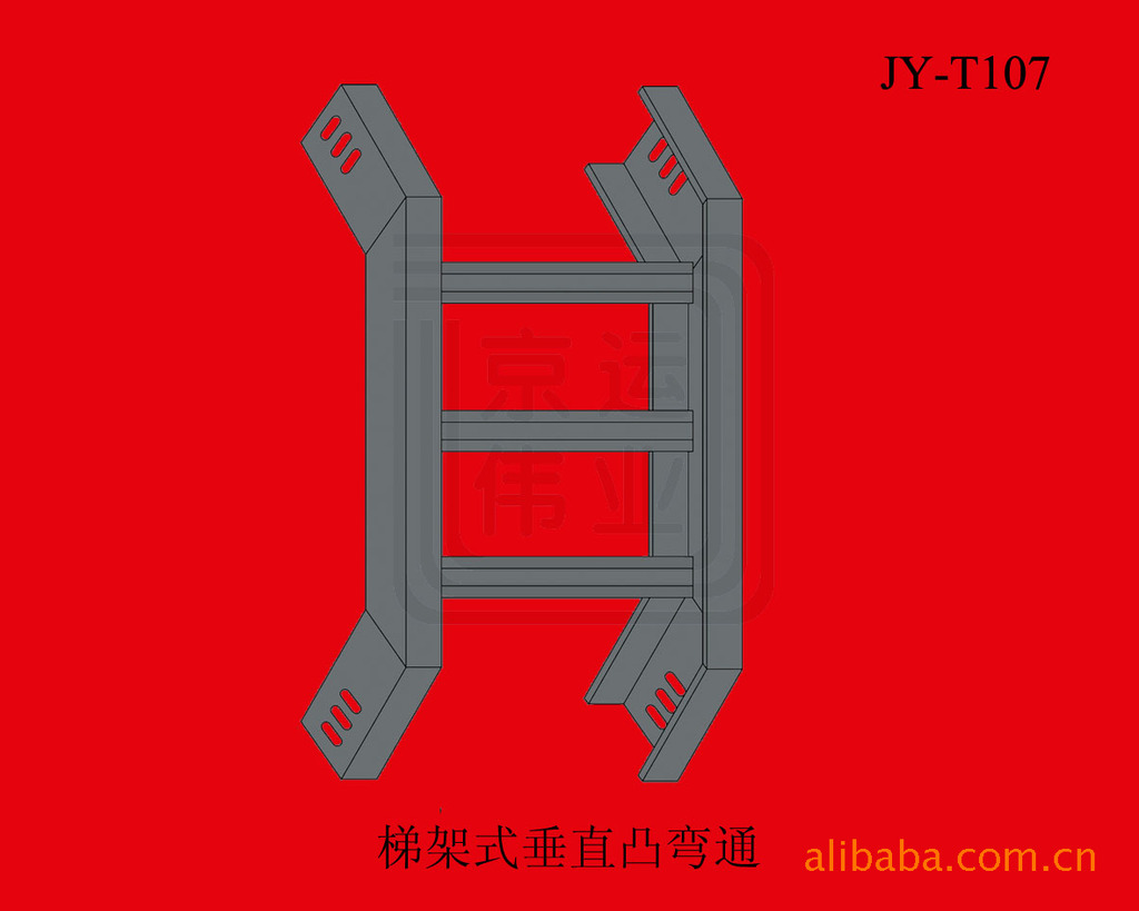 “京运伟业”电缆桥架_——梯架式垂直凸弯通,是梯式桥架敷设中较常用的配件,用于桥架垂直安装时改弯走线方向,可根据对应线槽任意选择出口宽度和高度,以便连接。