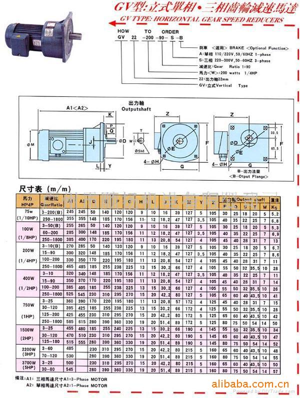 台湾高品质减速电机(减速马达),规格:100W~3700W齿轮减速电机、6W---120W交流电机、三相(刹车)电机.