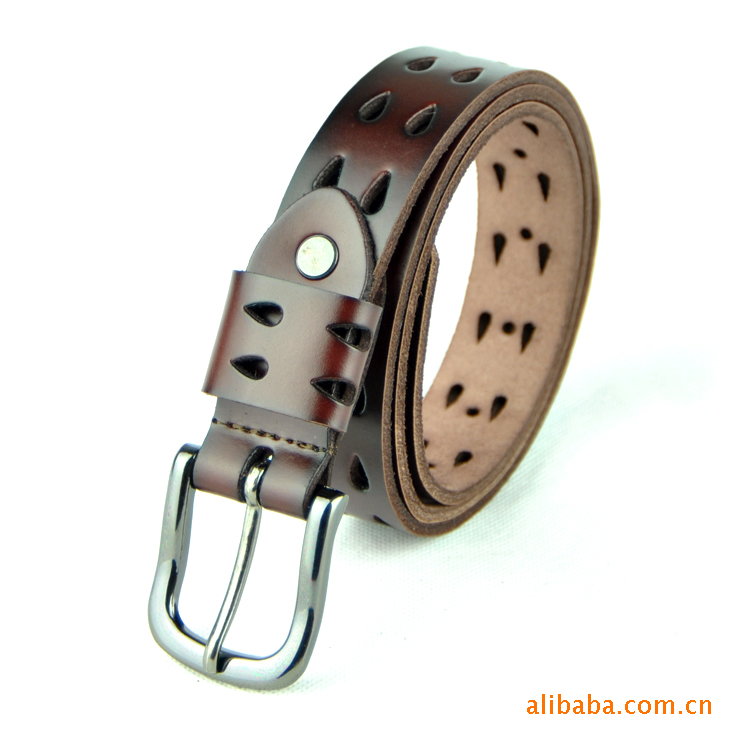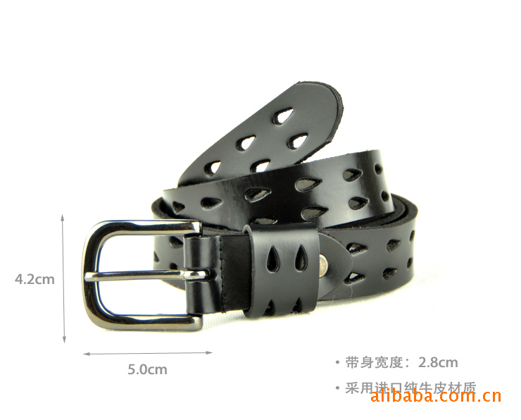 皮带批发 齐色 牛皮针扣皮带 男女士皮带 纯牛皮带