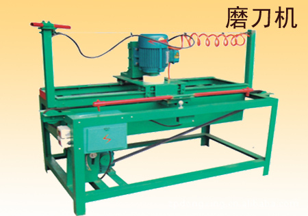 磨刀机的特点: 磨刀简洁方便,而且磨出来的刀刃在一条笔直的直线上,较之手工磨刀使得刀片的使用强度增加,增加刀片的使用寿命及加工能力。机床有机身、工作台、溜板、减速电极、磨头、电器六大部分组成,各部件之间结构紧凑,外型布置美观合理,磨头走刀均匀平稳,适用于各种直刃刀具的加工!磨刀机,其设有机座、研磨砂轮、电机、传动齿轮组,电机通过齿轮组减速带动水平设置的研磨砂轮旋转,机座上通过支柱支撑固定一长导轨和磨刀架,导轨设有角度调节钮,磨刀架安装在导轨上,磨刀架上设有刀具压板和固定旋钮及刀具伸出量调节钮。本实用新型机座上水平设置的研磨砂轮上方还设有水槽。机座上研磨砂轮四周还安装固定有积水罩。本实用新型结构简单、紧凑,操作、使用方便,刀具的伸出量、刀刃的角度可调,工作环境大大改善,适用范围广,是一种理想的磨刀机。