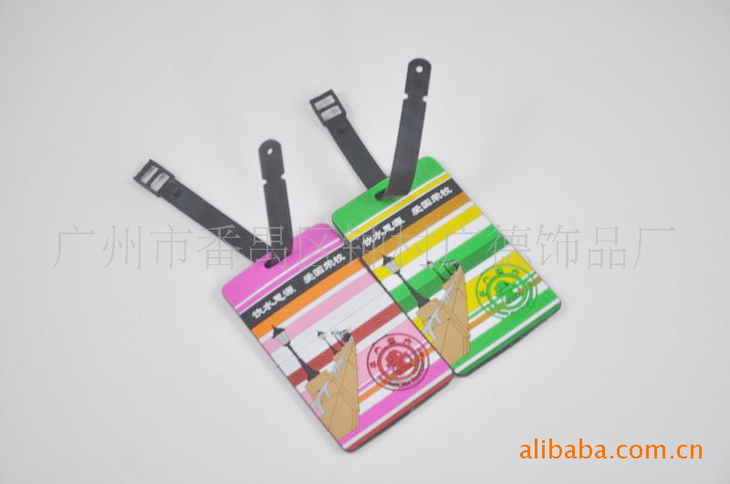 行李牌材料 | PVC软胶+透明PP片+印刷卡纸+塑料带 | 主要功能 | 手提包,皮箱,旅行袋等的装饰工具,并且可以作为包、箱的识别工具 |