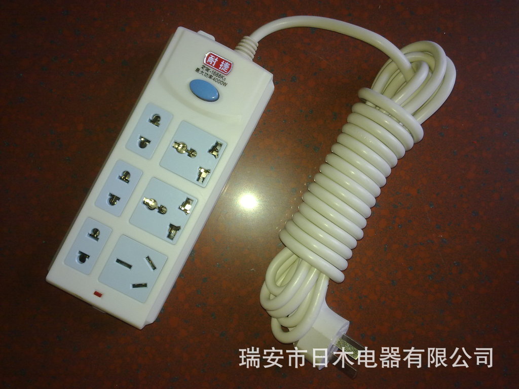 本公司插板的外接导线均采用三芯的纯铜电线,如图是5米电线和插头图