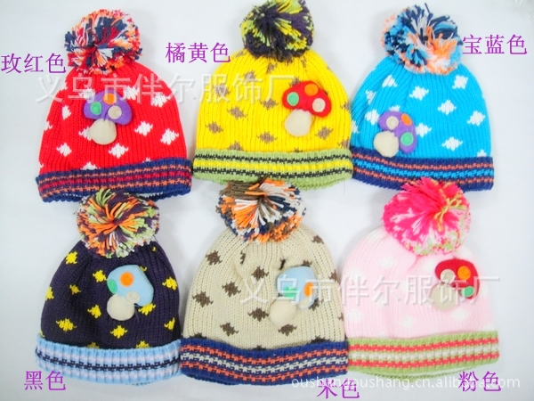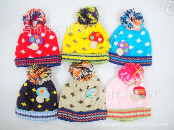 可爱蘑菇宝宝毛线帽,也可做亲子帽哦!