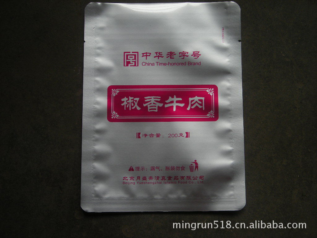 铝箔袋:1.结构组成:耐高温层/铝箔(真空镀铝)/粘接层/纤维增强层/热合层 2. 铝箔袋产品厚度:10—22丝 3. 产品规格:幅宽980mm—1500mm,250m/卷 4. 铝箔袋性能特点:卓越的防潮、隔氧、防锈、遮光、屏蔽、抗静电、抗撕裂、抗穿刺、抗挤压性能,可抽真空,外观亮泽,彩印效果佳。 5. 铝箔袋适用范围:因其内含增强层,可防止棱角或不规则突起的穿刺,所以特别适用于机械设备、电子仪器等的出口海洋性运输包装,可随意拼接热合,不受尺寸及形状限制。