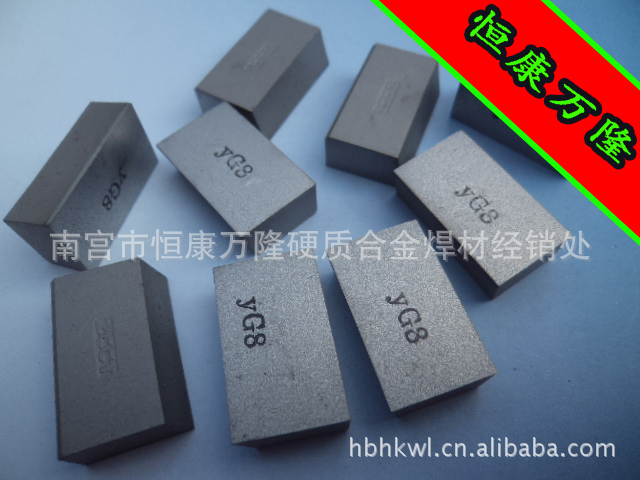 YG8硬度≥89.0 适于铸铁,有色金属及其合金,非金属材料不平整表面和间断切削时的粗车,粗刨,粗铣,一般孔和深孔的钻扩,扩孔。