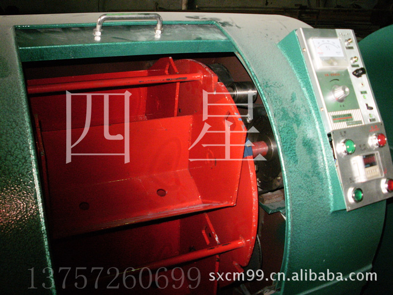 本机器采用行星传动方式,利用离心运动原理。有4个 6角滚筒装载于料斗中(料斗固定装载在转动盘上;58型以上滚筒固定在转动盘上。),当转动盘转动时,滚筒以逆方向转动。将工件、研磨石、水与抛光助剂放进滚筒后,将滚筒予以固定时,物体被离心力转动,此时物体受滚筒槽的强压力从而使得工件与磨料、助剂产生快速、均匀的摩擦;达到表面处理的要求。快速研磨光饰从而保证工件原有形状、尺寸不受变化。