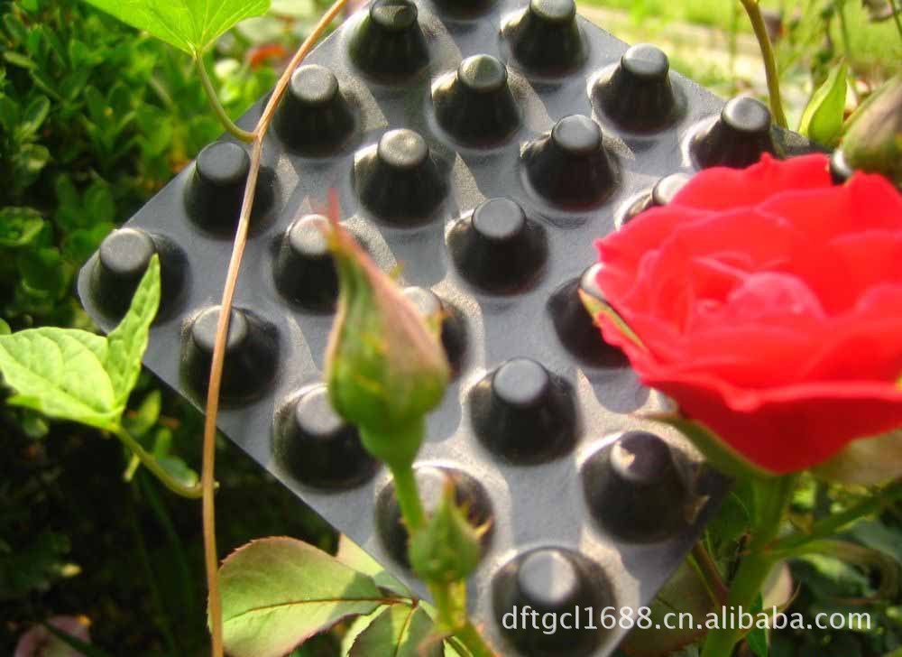 排水板是由聚苯乙烯(HIPS)或者是聚乙烯塑胶底板经过冲压制成圆锥突台(或中空圆柱形多孔)而成,圆锥突台的顶面胶接一层过滤土工布,以阻止泥土微粒通过,从而避免排水通道阻塞,使孔道排水顺畅。 传统的排水方式使用砖石瓦块作为导滤层,使用较多的鹅卵石或碎石作为滤水 层,将水排到指定地点。而现在用排水板取代鹅卵石滤水层来排水则省时、省力又节能、节省投资、还能降低建筑物的荷载。