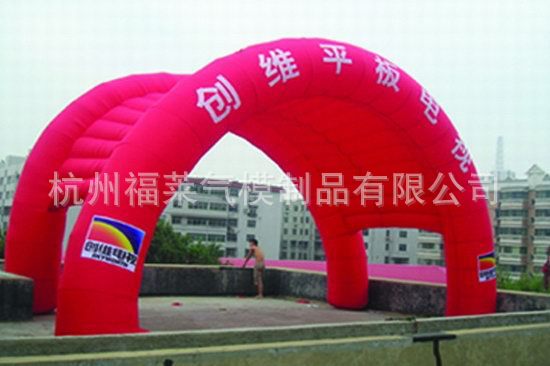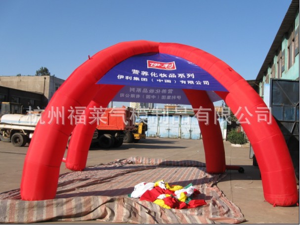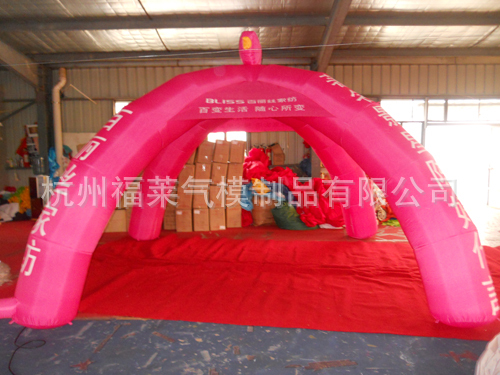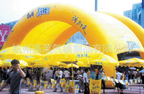 充气广告帐篷,面积大,可再帐篷下面做户外广告宣传活动;可再帐篷上印广告或LOGO。可根据具体要求来定做。该产品适用于体育,旅游,商业,文化事业,尤其是交易展示活动现场及休闲娱乐,度假场所,相对于一般结构帐篷筑物,充气建筑投入成本低,制作使用便利,外型美观,色彩艳丽,创造了一种全新的空间效果!