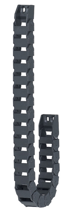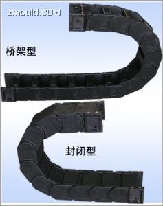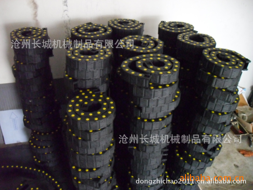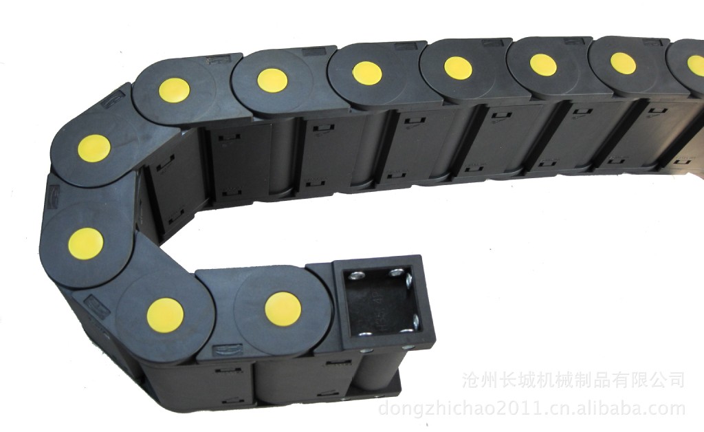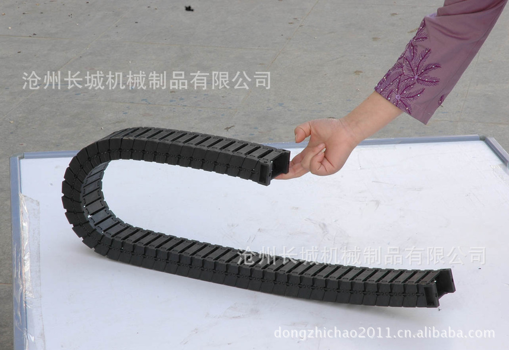 工程塑料拖链系列 用途: 拖链安装说明: 1. 拖链内电缆要直线排列,位置是拖链中间。 2. 安装垂直式拖链时参考下面技术材料:拖链最大运行距离不到四米,可不用支架;超过四米必须得用支架,防止低垂现象。 3. 电缆、保护管分离方法:不同的电缆,保护管直径之和若超过拖链内腔高1.2倍时,不必用隔条。不到1.2倍时,必须安装隔条;所有的电缆或保护管直径不到拖链内腔高度的0.5倍时,必须得安装横隔条;电缆,保护管安装铺设时互相不要靠得太紧。当拖链必须铺设大量电缆,抑或直径相关太大时,拖链里必须安装纵横多层内隔板;电缆要直线排列,才不至于互相缠结,拖链里按电缆以前,电缆不应该受损伤,电缆线应于圆筒式线架上,笔直取下(不要弯折),保持其正常状态铺设入拖链内。 Usage : 1. The cables have to be arranged in a straight line in the cable chain, so it can be installed in the center of the cable chain inside. 2. Please refer to below technical data if the cable chain can be installed vertical standing applications In case of the maximum strokes are less than 4m, it do not need the support. In case of the maximum strokes are more than 4m, it have to be used with support in order to prevent the cable chains from hand down. 3. Distribution of the cables or hoses: If the sum of cables and hoses with different diameter of bigger than 1.2 X chain inner heithe, no need pider between the two cables or hoses, however, if the sum is less than 1.2 X chain inner height, vertical pider must be used. _Horizontal separator must be used if the sum of cable or hose`s diameter is less than 0.5X chain inner height. Flat cables or in a circle cables and hoses should be loosened mutually in the chain. Chain have to be arranged separator and pider enough so that set in lots of cables or set in very different diameter`s cable. Cable must arrange straightly in the chain so that cable should not get tangled. Also cable should not damage and be in a straight line on the drum. After that this normal cable if able to put into the chain. |