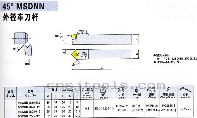 本厂大量供应45°复合式外圆车刀MSDNN,可转位精密车刀批发