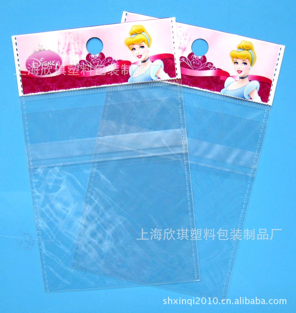 ⑴OPP袋具有透明度高具有垂直感等特征,由OPP单片对折后侧面封边并在开口舌头处粘有自粘封条,使用时装入产品撕去封条表面的保护皮后将舌头对折后粘牢即可,袋子顶部吊卡(珠光膜)和印刷各式艳丽图案,能充分展示出内部产品本质和特色.使用方便、美观大方,还可根据客户需要印刷各种图案及打蝴蝶孔、飞机孔,密封性好,防伪性强。