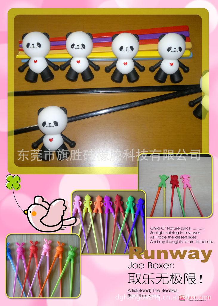 6)为便于夹住食物,加宽了筷子前端的面积。为提高儿童兴趣采用了卡通设计。