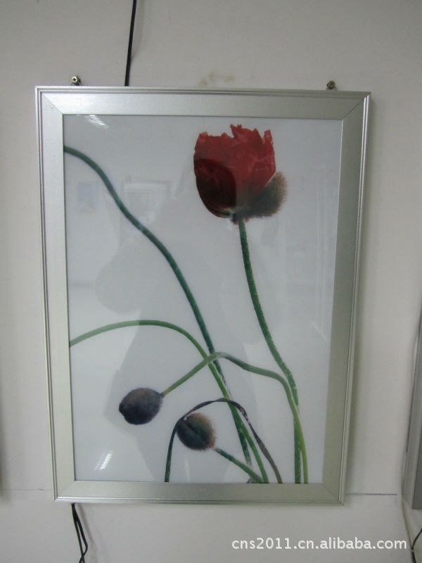超薄灯箱由于其具有节能,美观,安装简便等特点,越来越受到社会各界尤其是广告界的认可。我公司采用最新均匀光板凭借优良的化学性能和光学品质使得超薄灯箱具有更杰出的广告效应。特点: ☆铝合金外框,时尚样式,竖向或是横向放置(悬挂) ☆亚克力水晶外框,精致美观,竖向或是横向放置在桌面上或悬挂在橱窗上 ☆前开启,更换灯片简易 ☆具有超薄、节能、环保等优点 ☆高亮均匀,低热、低耗能参数: ☆LED的最显著特点就是使用寿命长,光电转换效能高,体积小,稳定性高,发光均匀,环保省电,使用寿命10万个 小时以上 ,亮度达600CD以上; ☆ 本产品采用LED作为光源,导光板为进口压克力雕刻不上色,与铝型材相接合,内置LED,可发白光, 红光,蓝光等,还有七彩渐变。 ☆绿色照明光源。LED光谱中单色性好,没有多余红外、紫外等光谱,不含汞有害物质,热量、辐射很 少,单个LED的光通量小。目前单个LED的光通量研究水平可达120lm/W,产品水平≤60lm/W,而且大 功率的LED往往要增加尺寸很大的散热器,所以LED光源一般采用LED阵列设计方法。 ☆平面发光,方向性强。它与点光源白炽灯不同,视角度≤180°,单色性好、色彩鲜艳丰富。颜色饱和度 达到130%全彩色,使灯光更加清晰柔和。