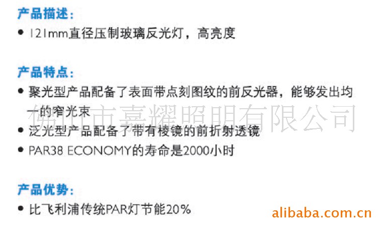 5.加强型双螺旋灯丝连接的特殊保险丝,比飞利浦传统PAR灯节能20%以上,防暴性能高,更安全可靠;