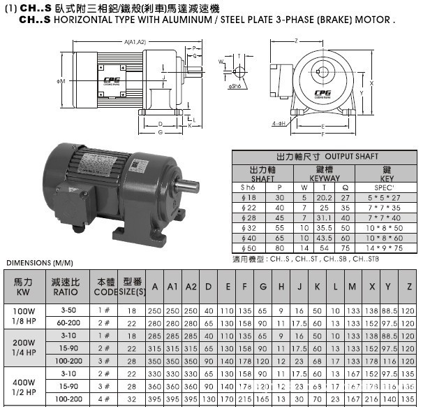 CH..S HORIZONTAL TYPE WITH ALUMINUM/STEEL PLATE 3-PHASE(BRAKE)MOTOR。