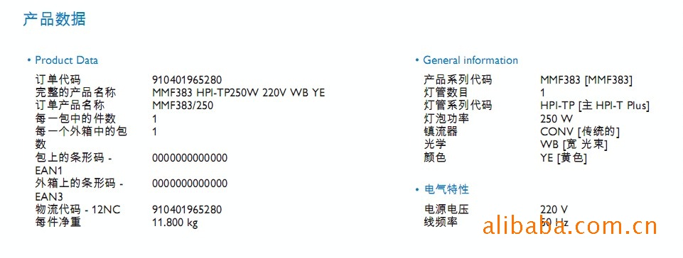 灯管系列代码 HPI-TP [主HPI-T Plus]