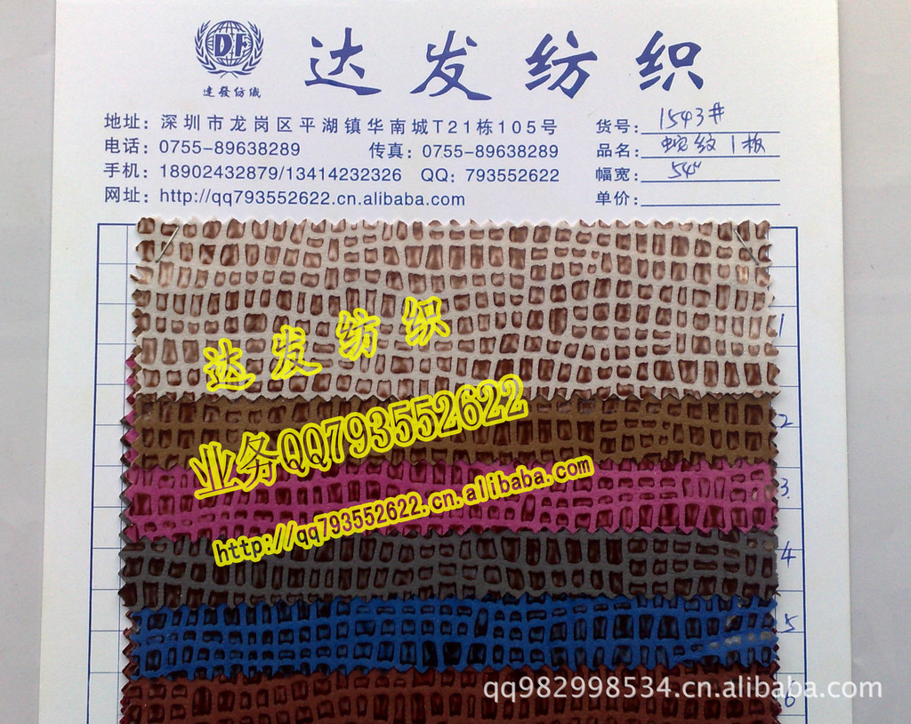 达发专业压胶、烫金、烫银、植绒布、印花、闪光布、压纹布、烫珠片、绣珠片、冲孔、豹纹、斑马纹、蛇纹、鳄鱼纹、龙纹、满金、圆点、晃动水波纹、花朵、蝴蝶印花等。。。。可做pu、PVC、优丽胶、贴合、防污、抗UP、紫外线透气、防泼水、阻燃、涂银、涂金、印花等后加工。(本产品可通过欧洲、美国最新环保标准)环保活性染色其色泽亮丽,广泛用于服装、鞋材、箱包、手袋、玩具、家私、包装盒、工艺品、装饰品等。
