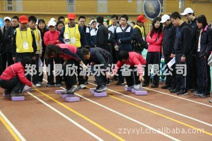 ★比赛方法:4--6人为一队站在木质协力竞走上前行,赛程30米,往返一次,用时最短者为胜。