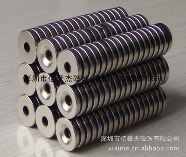 深圳市亿豪杰磁铁有限公司是专业供应钕铁硼的企业,主要产品有钕铁硼强磁、铁氧体磁铁、橡胶磁、保健磁铁、沉头孔磁铁,镀锌磁铁,镀镍磁铁。强力磁铁、手袋磁铁,包装盒磁铁、玩具磁铁、手机专用磁铁、家具磁铁,皮具磁铁,五金塑胶磁铁,工艺品磁铁,皮具手袋箱包用的隐形磁铁、磁扣磁钮等, 一、产品性能: N30-50 N30M-N50M N30H-N45H N30SH-N45SH N28UH-N45UH 二、产品形状: 各种圆形、方形、环形、条形、瓦形、梯形、各种畸形打孔磁铁等 三、主要用途: 玩具、包装盒、手袋、皮具、电子产品、手机、电声产品、电机、马达、仪器、文具、标识牌、工艺品、礼品、服饰配件、隐形磁钮及隐形磁扣等各种用途的磁铁 四、表面处理: 镀白锌、兰白锌、五彩锌、镀镍、镍铜镍、纯银、纯金及环氧镀 五、优势特点: 交货快捷,准时,品质好,服务完善,珠三角地区可以3-5天交货 亿豪杰磁铁公司热忱欢迎广大海内外的客商来电来函洽谈业务,我们将本着互惠互利的原则,期盼与你携手合作、共创辉煌!
