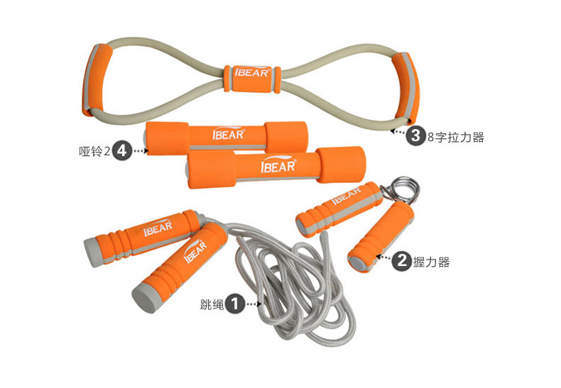 名称:IBEAR伊贝尔 运动五件套(8字拉力器、跳绳、哑铃2、握力器) S-010款式:器材/器械 健身器材 小型器材 品牌:IBEAR伊贝尔 型号:S-010 材质:pp+钢材+泡棉+乳胶管 颜色:桔色+灰色 温馨提示:商品分为新老两种包装盒,新老包装盒将会随机发放。