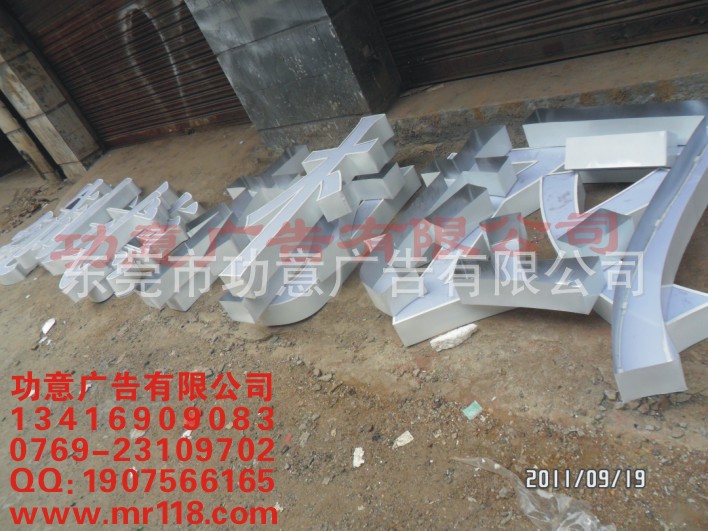 东莞功意广告 从九几年开始进入广告行业已有十多年了都是在广告行业打拼从未放弃过,到现在我自己出来开厂有多年了就是想把自己学到这些发挥出贡献出来为大家服务当然了我们也是有专业的团队精神为您专业的服务。希望大家多多支持也欢迎来电来图制作.来人参观也请您对我工厂提出您的宝贵建意. 专业为您服务的项目: 工程部: 广告招牌工程.铁架工程.字牌工程.招牌安装. 高空工程.招牌翻新.LED招牌制作.招牌维护工程.亮化工程。 招牌部: 专业制作广告招牌. 东莞吸塑发光字灯箱招牌专业从事发光字吸塑LED字霓红灯金属吸塑灯箱等广告制品的开发设计.制作和施工为一体的大型广告装饰.下设雕刻加工部吸塑制作部发光字制作部安装维护队. 我们拥有一批经验丰富的技术人员。 金属字部: 铜字. 烤漆字. 不锈钢字. LED发光字.楼顶大字. 水晶字. 钛金字.沙金字.汽车烤漆字.高.中.电镀金.银字.字牌加工. 金属腐蚀部: 腐蚀牌.机械牌.铜牌.不锈钢牌.东莞钛金牌.东莞汽车烤漆牌.东莞奖牌.东莞红木底板牌.东莞沙金牌.东莞指示牌.东莞门号牌..东莞丝印牌.东莞晒丝牌.最小的字可以做到0.3MM.铝.钢.铁腐蚀加工.上色.保证质量..美观好看大方. 谢谢.欢迎来电来人来图制作.