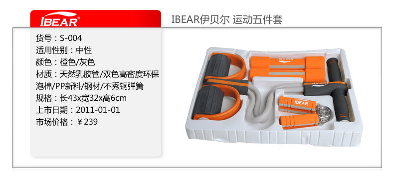 名称:IBEAR伊贝尔 运动五件套(哑铃2、握力器2、脚蹬式健腹器) S-004