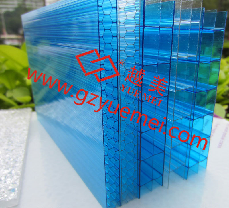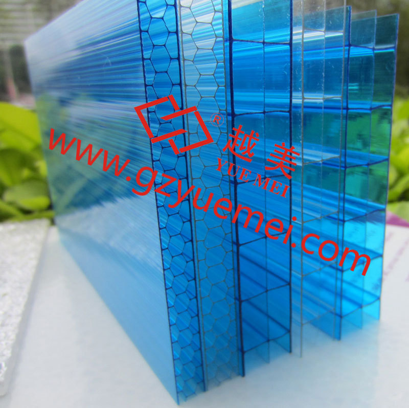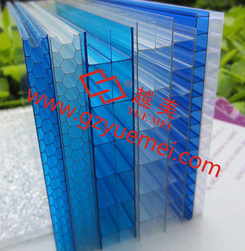 越美牌PC #、X型三层中空板特别坚硬,极佳的保温性能,安全性高,隔音性能好