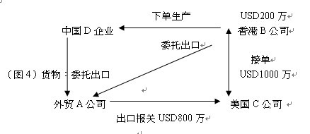 但如果D企业在香港设立一间香港B公司,并通过(图4)进行操作的话,这样以上的问题及风险就可以完全避免了!另外一种情况是由于有些刚刚从事外贸的人(如:个人做外贸的客人)很多情况下没有自己的工厂,当接到海外进口商的定单时下单给工厂生产并出口或工厂交货后再委托外贸公司出口。同样由于资金流及物流都要通过外贸代理公司或工厂,使国外进口商很容易获取外贸公司或工厂的资料。当国外进口商知道我们是个小中间商的时就会绕过我们直接找外贸公司或工厂供货,从而使我们千辛万苦找来的进口商毁于一旦!