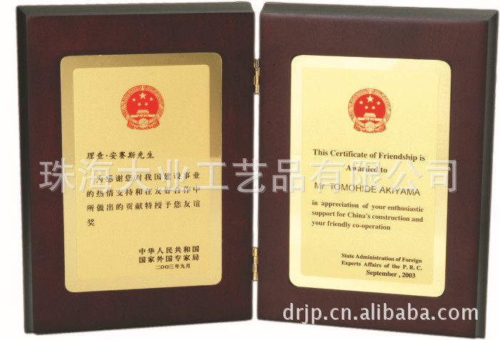 珠海大业工艺品有限公司是一家十年来一直致力于工艺品、礼品的专业厂家,集开发、生产、销售于一体。主要经营的产品:地方特色旅游纪念品、外事礼赠品、广告文具促销礼品、奖牌、经销牌、酒店指示牌、员工号牌、产品铭牌、箱包标牌、家私标牌、金卡、书签、锁匙扣、徽章、领带夹、饰品等铜木相结合的工艺品、礼品。 经过十多年的发展,公司已对整个市场以及行业的运营模式有了相当的了解,但随着全国经济的繁荣发展,经营礼品产品的公司如雨后春笋般地建产起来。面对如火如荼的市场竞争,公司始终坚持“尽心尽力,争创一流”的企业宗旨,不断开拓进取,实现突破发展;积极汲取文化遗产的精华,糅合现代文明的精髓,生产出具有纪念意义和收藏价值的产品来迎合市场的需求。公司将竞争当作不断向前发展的动力,最终在激烈的市场竞争中逐步发展,赢得了广大客商支持和信赖。 “成就客户在先,塑造自身在后”是公司服务客户的不变宗旨,“诚信双赢”是大业对您的由衷承诺。公司产品在全国各地都非常畅销,但是大业坚持提出:大业是工厂,而不是中间商。如果客户对公司产品感兴趣的话,大业愿意接受市场的检验。因为大业一直坚持客户至上的经营宗旨,致力于以理服人,以诚信待人,给客户一个稳重踏实的形象。承蒙多年来新老客户的关照,大业工艺品将再接再励,开发出更多更新适应市场需求的产品。
