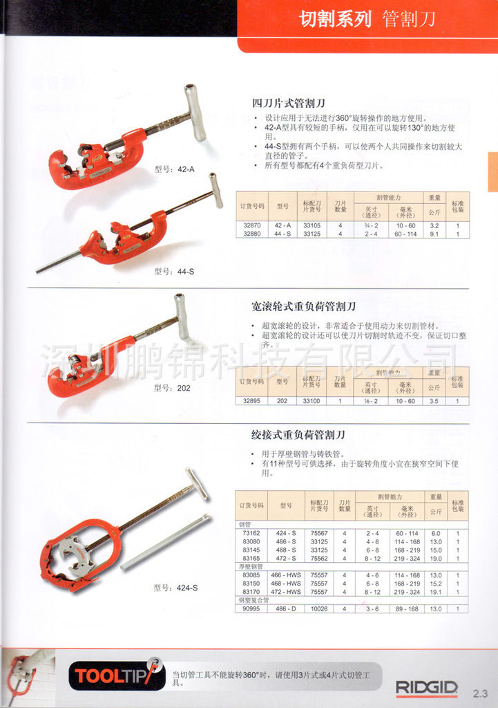 • 超宽滚轮的设计,非常适合于使用动力来切割管材。