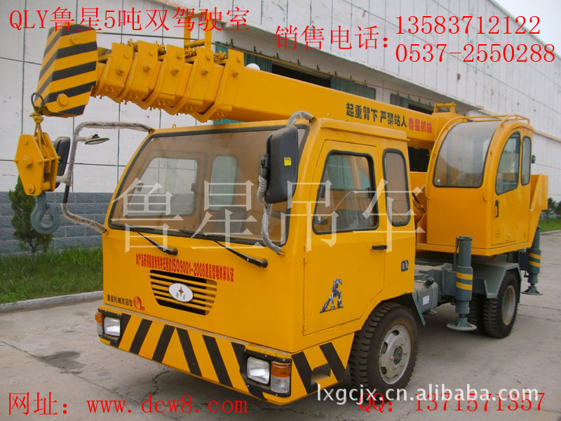 鲁星吊车特点:全液压传动、机电两用、工作安全可靠、效率高劳动强度低;每个液压系统都配有平衡阀和液压锁,安全、可靠性能更高;起升卷扬机采用常闭式液压制动,也可选配液压起重绞车;吊臂及重要结构件均采用低合金钢板制作,减轻吊车自重,提高吊车性能;回转支承全部采用50锰锻打材质制作;6吨及以上吊车主要配件全部采用徐工/东岳原厂配件,如:主阀主泵、卷扬系统、回转系统、回转支承...等!吊臂冷作成型,矩形、五棱形结构,充分发挥材料的机械性能;吊臂采用液压缸伸缩,工作更加安全可靠;加装夜间照明灯,扩展了工作时间;吊臂伸缩极限使用标志线和报警器双保险;可选配前后驾驶室、负臂和三相电作业;吊车可选装力矩显示器、高度限位器;吊车均装有散热器,更加利于夏季工作;液压油管路橡胶管全部采用双成钢丝超高压油管,钢管全部采用电镀处理;联系电话:05372550288 13583712122QQ: 1371571357网址:www.dcw8.com邮箱:1351371357qq@.com