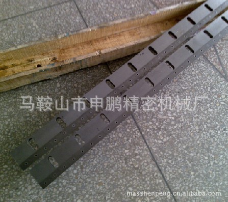 马鞍山申鹏精密机械厂是全国生产刀片.模具.先进企业之一.主要生产金属剪切机刀片.纵剪机圆刀片.粉碎机.切粒机.折弯机模具.分条机圆刀片.美工刀片.纸业刀片.食品机械刀片.塑料机械刀片.剪板机刀片.造漆刀片及配件.切布机械刀片.皮革机械刀片.橡胶金属隔套.合金锯片及其他非标刀片.......... 专业生产碳钢刀片 , 合金钢刀 , 锋钢刀 , 镶锋钢刀 , 不锈钢刀 , 硬质合金刀片 , 钨钢刀七种材质的刀片;我公司依据机械刀片形状的不同生产销售圆形刀片 , 长形 , 弧形 , 齿形 , 异形五种形状的刀片;广泛应用于陶瓷、印刷机械、造纸行业、纸箱、林业、橡胶、塑料、食品机械、轻纺、电器、轻工机械、铝箔 , 金属化膜、烟草、卷烟、包装材料、BOPP 薄膜、电子电器、电线、电缆、造船、化纤、玻纤、纺织、饲料刀片、纸管刀片、林业刀片 、 木工机械、塑料破碎、边封、中封、底封制袋机、木材加工、食品包装、造纸铝箔分切、冶金机电、药材、橡胶、电线、电缆、皮革、卷烟等各行业标准与非标准机械刀片。