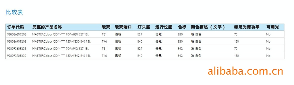 照明灯技术特性