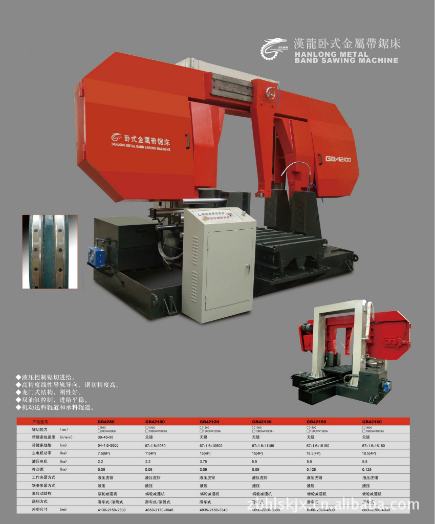 卧式带锯床:带锯床主要用于锯割合金结构钢、中碳钢、低合金钢、耐热摸钢SKT、高合金刚、特殊