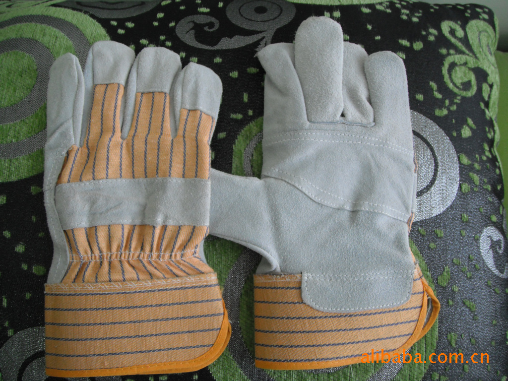 特点:主要是隔热,耐磨,防止飞溅物烫伤,阻挡辐射,同时有一定的绝缘性能。从事电焊等必备的劳动保护手套,适用于机械加工厂企业、机械工人、电焊工人、机修工、及建筑业工人的使用。