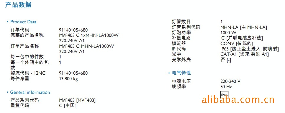 灯管系列代码 MHN-LA [主MHN-LA]
