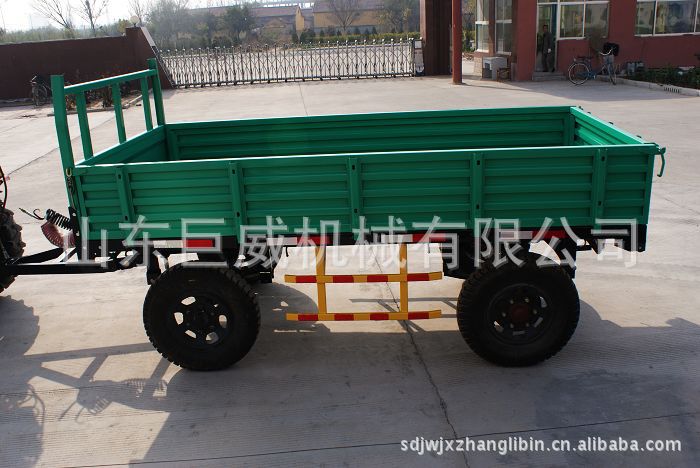 3吨拖车一般采取4轮形式,配套动力25-40hp,刹车采用充气刹车。可选装自卸。4轮自卸是采取双侧翻的形式,4轮车配备电路。适用于中载货物的中短途运输和田间做业。转向形式:无心转盘。减震形式:弹性弓板。牵引形式:三角架活牵引。自卸配置:双油缸。后置尾灯、左右护栏。整车汽车线束。气路连接形式:气管快接头。电路连接形式:螺旋七芯线快插头。油路连接形式:快换接头。表面处理:大型抛丸机消除焊接应力、除锈、除氧化皮、防锈漆、面漆、烤漆处理。焊接工艺:CO2工装焊接。运输形式:散件运输、厢板软包装。