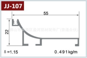 橱柜免拉手系列-上拉手JJ-107,可定做多种表面,与中拉手JJ-108配套使用,产品厚度为1.15,适合用于各种中高档橱柜门板!