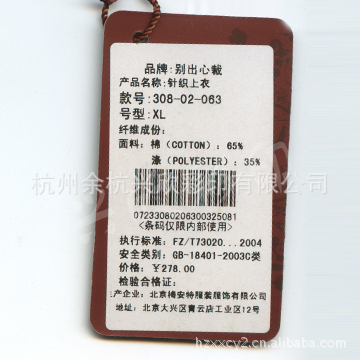 【产品用途】:服装吊牌、鞋类吊牌、物件吊牌、品牌指示吊牌标签等等,我们会根据客户不同的需要,为您量身定做您所需要的吊牌,为您服务是我们的荣幸!!!