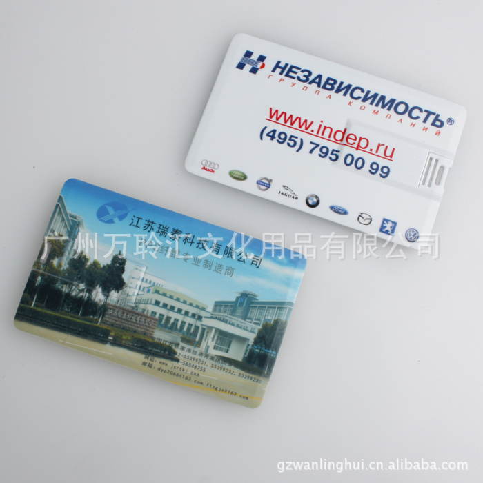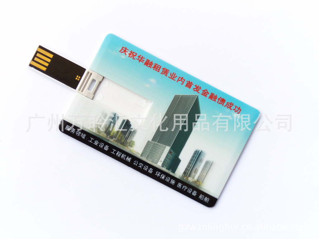 礼品U盘又称形象U盘,材料有金属,塑料,木质,硅胶,等等如卡片U盘,由ABS材料制成,外观和标准银行卡一样,长宽为85*52MM,厚度为1.2-2MM。 卡片U盘尺寸比例卡片U盘因为可以印刷各种精美彩色图案而成为优秀的广告载体,成为电子礼品业的首选。普通U盘进行宣传,只能在外观上做公司的LOGO,当时或一时起作用,过后就失去了宣传效果。卡片U盘,除可在外观上做公司的LOGO外,还可在U盘芯片里做企业的广告宣传片及产品介绍等等。卡片U盘一般使用寿命是5-6年(好的8-10年没问题),等于企业花了一次钱,做了几年的广告,这样,通过客户之间口啤的宣传,更有信誉和真实性,有助于客户量的增加。可谓,一次购买,终身服务。