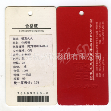 【产品用途】:服装吊牌、鞋类吊牌、物件吊牌、品牌指示吊牌标签等等,我们会根据客户不同的需要,为您量身定做您所需要的吊牌,为您服务是我们的荣幸!!!